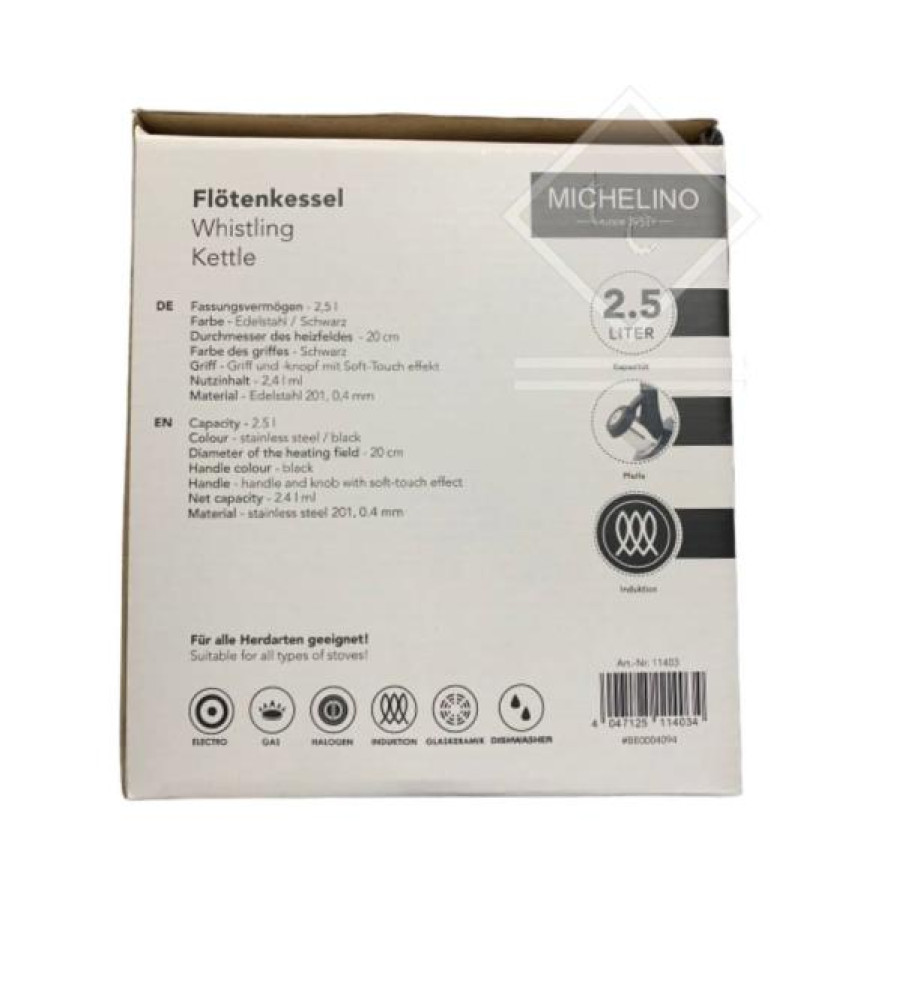 WHISTLING KETTLE 2.5L BLACK MICHELINO
