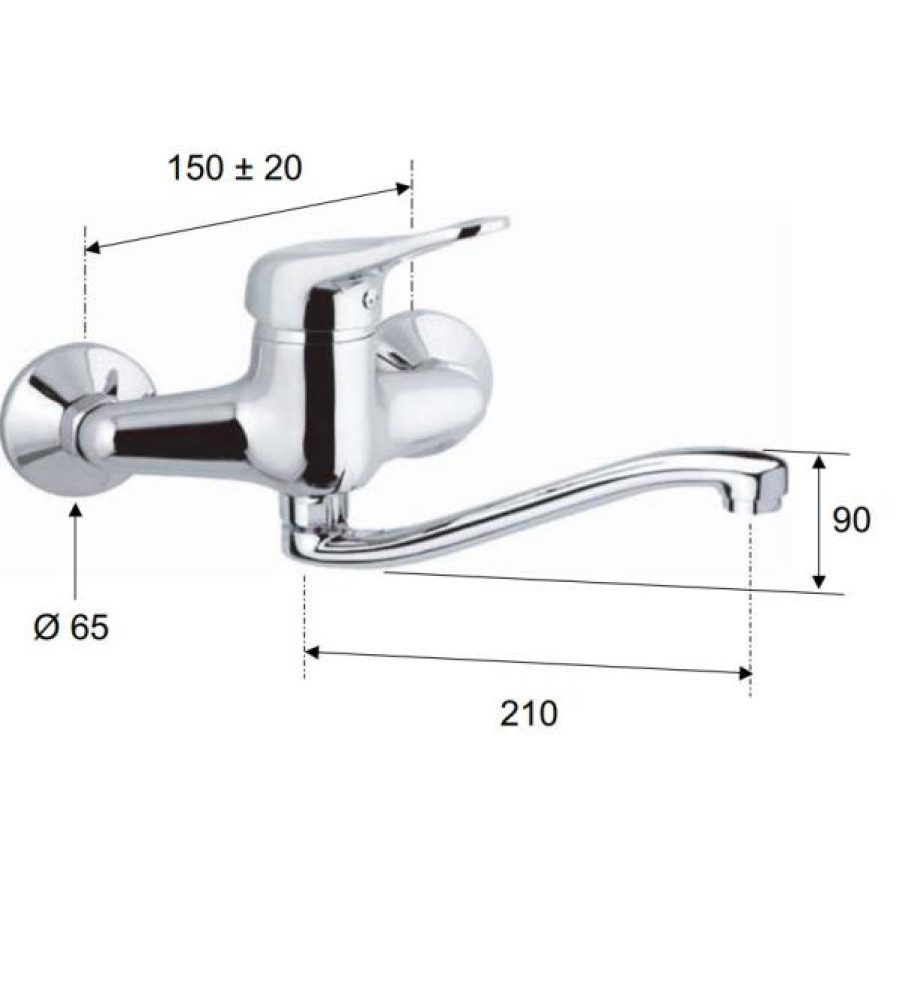 WALL SINK MIXER `S` BOTTOM SPOUT K41S