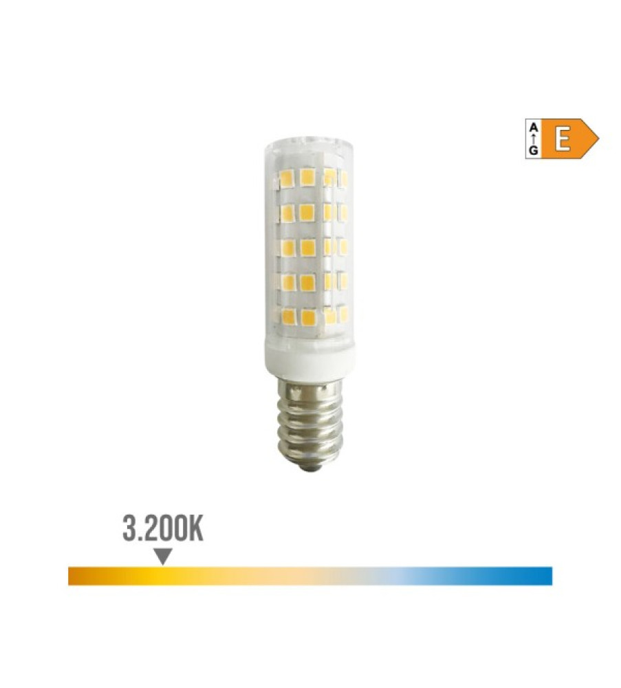 TUBULAR LED BULB E14 6.5W 800lm 3.200K WARM LIGHT 220-240V 50Hz EQUIVALENCE 60W ESTIMATED LIFE 25000h OPENING ANGLE 270° NON-DIMMABLE ENERGY CLASS E. EDM