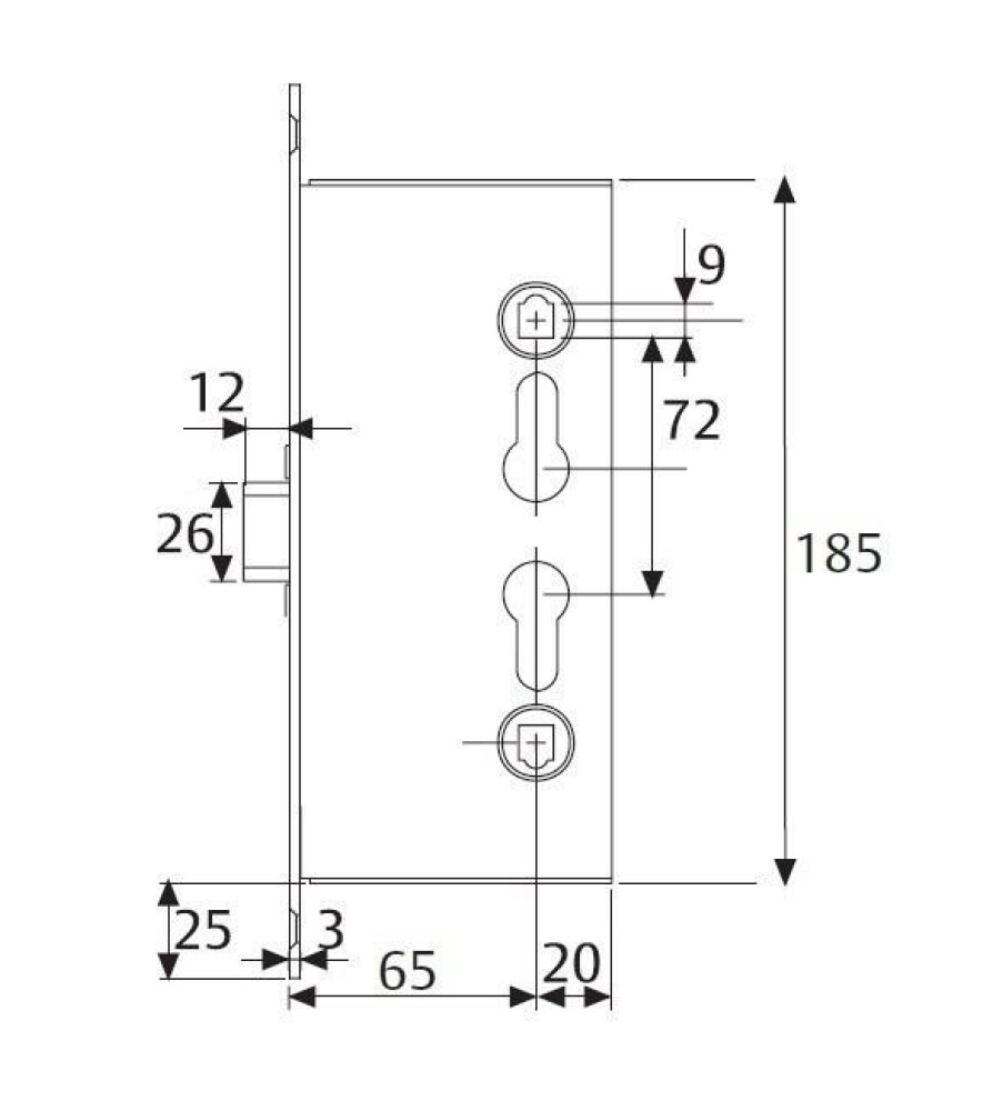FIRE DOOR LOCK CISA CF60R 7/65/9MM ZN