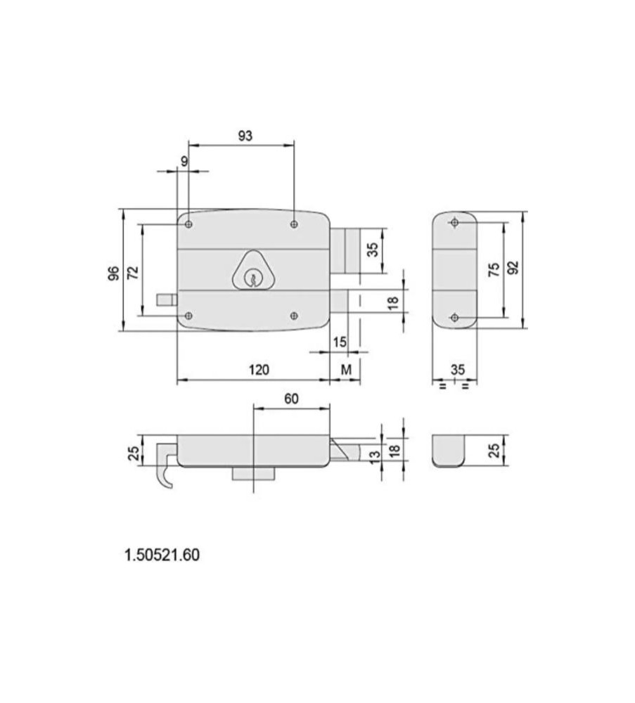 CISA FIXED CYLIDER LOCK 60MM RIGHT 50521-60-1