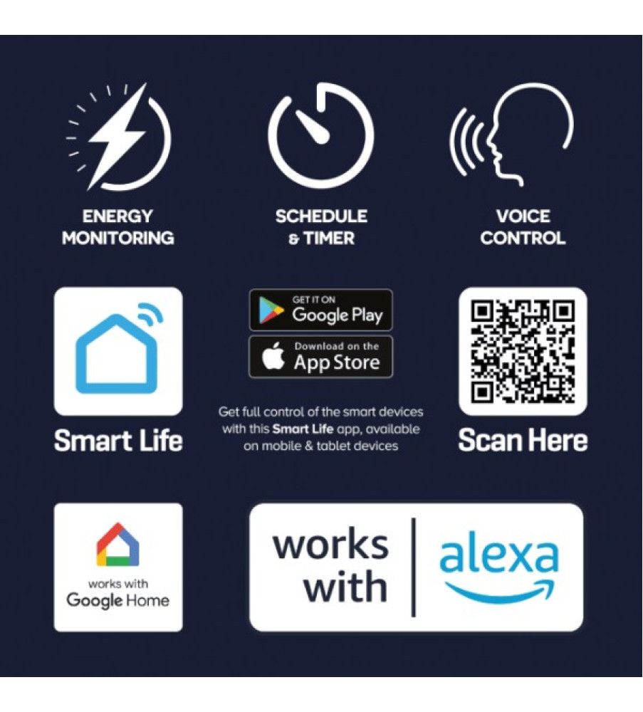 Simplify your life with the Daewoo WiFi Smart Plug Socket Adaptor. Control your appliances from anywhere using the Smart Life app making it easy to manage your home’s energy usage and daily routines. Whether you’re at home or on the go you can turn your devices on or off with just a tap on your smartphone.