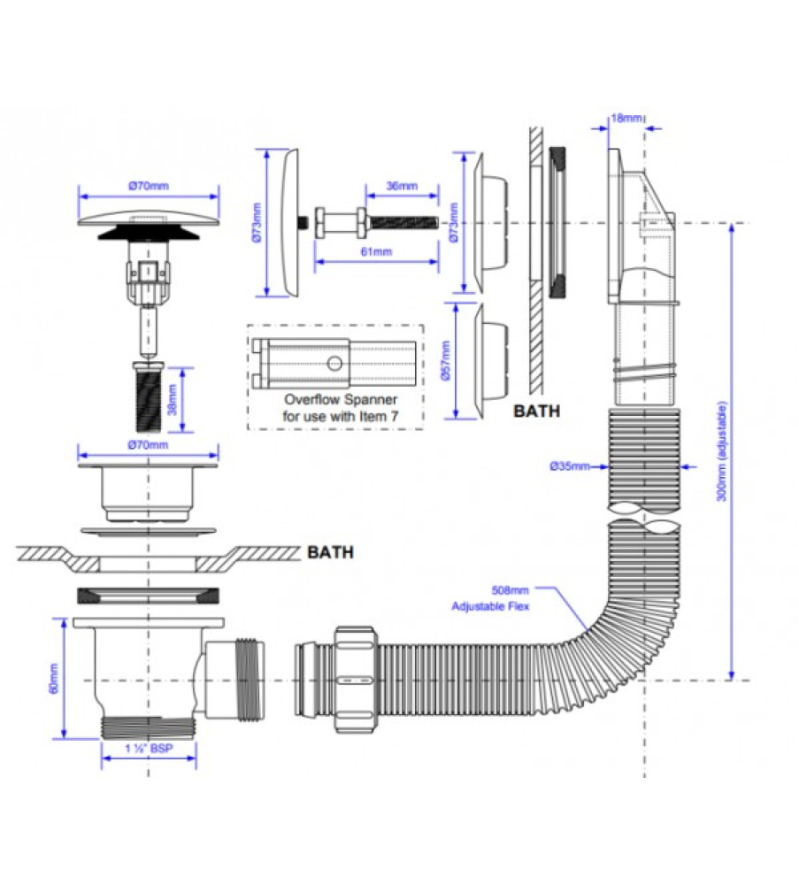 CLIK CLAK WASTE & OVERFLOW FOR BATH